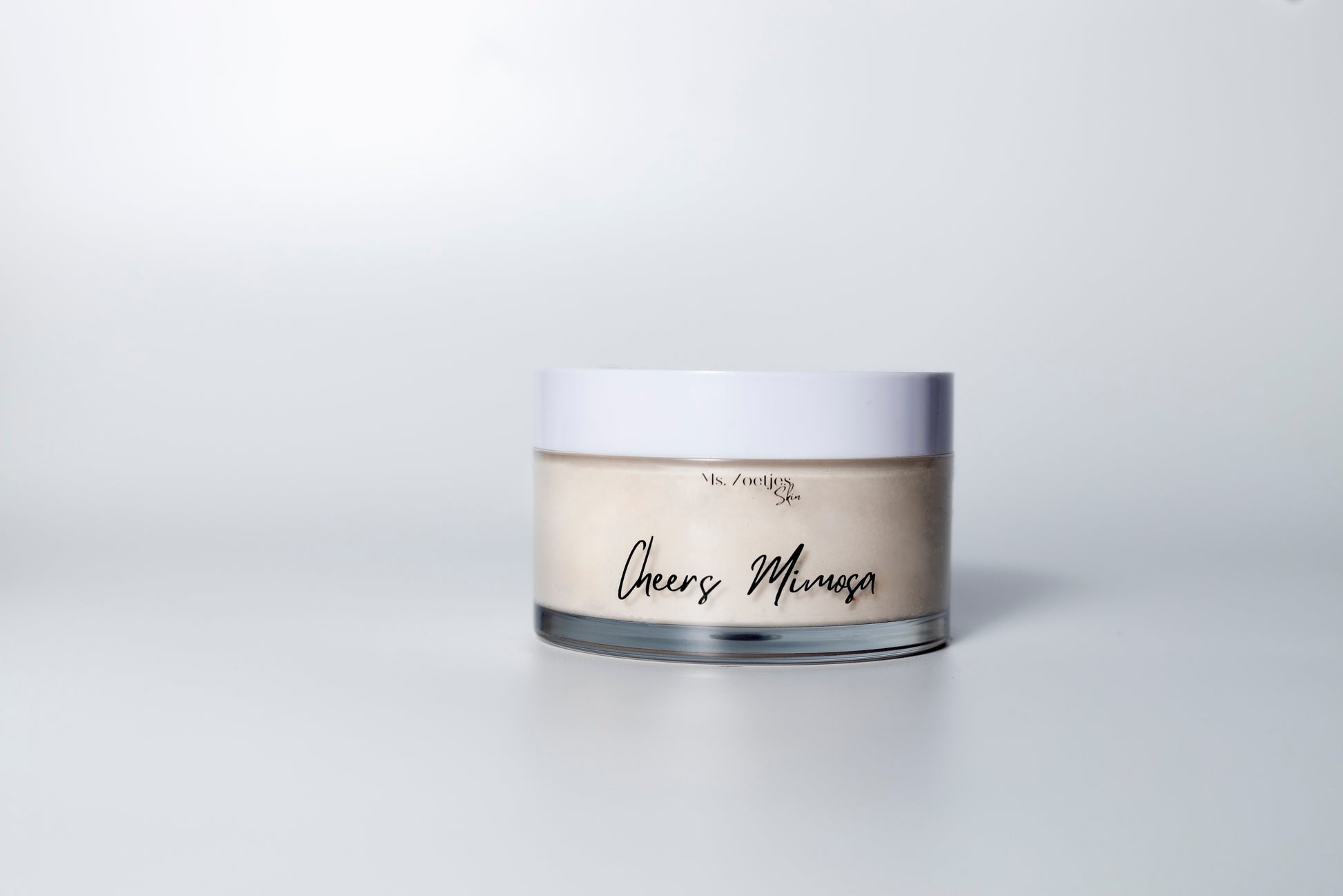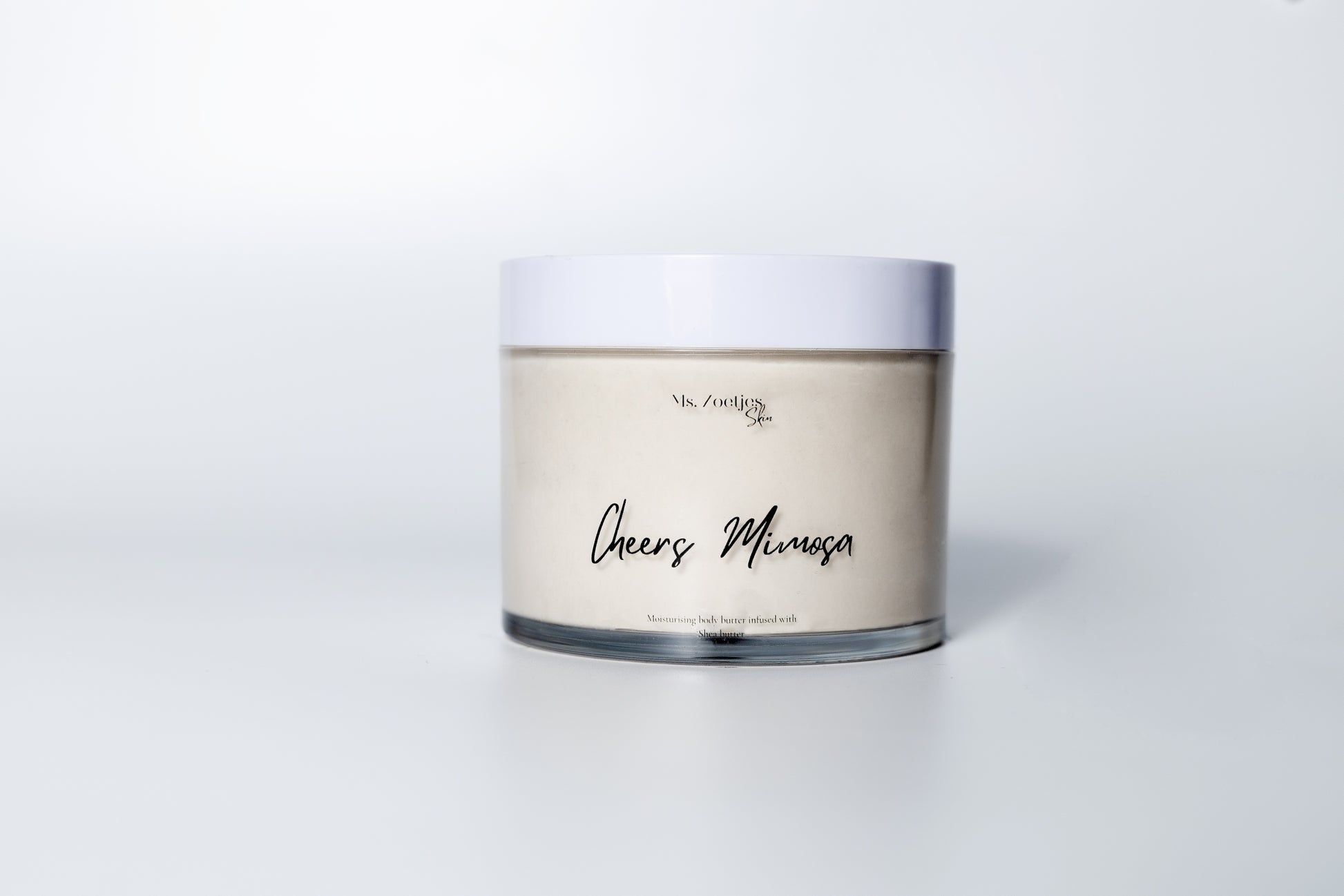 Raise a toast to velvety skin with our Cheers Mimosa whipped body butter! Infused with the bright and bubbly notes of sparkling champagne and fresh-squeezed orange juice, this luxurious blend will leave your skin feeling as radiant and refreshing as your favorite brunch cocktail. Cheers to you!